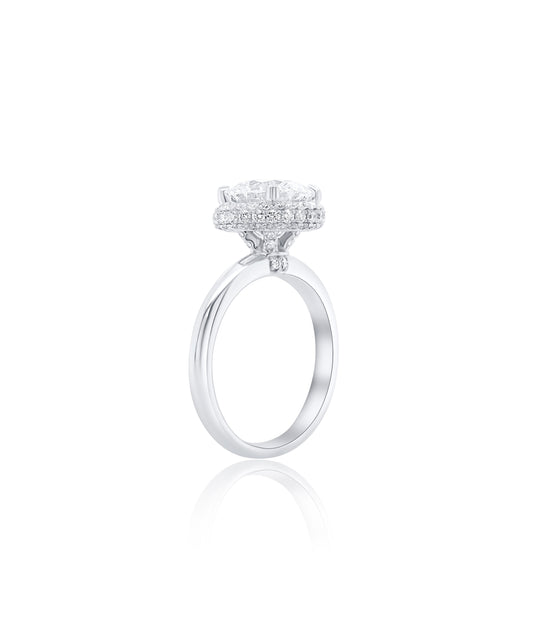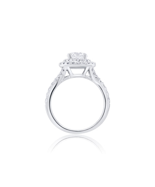 Round Brilliant Cut with Split Shank Cathedral and Dual Diamond Halo