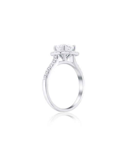 Classic Cathedral with Cushion Cut and Diamond Halo
