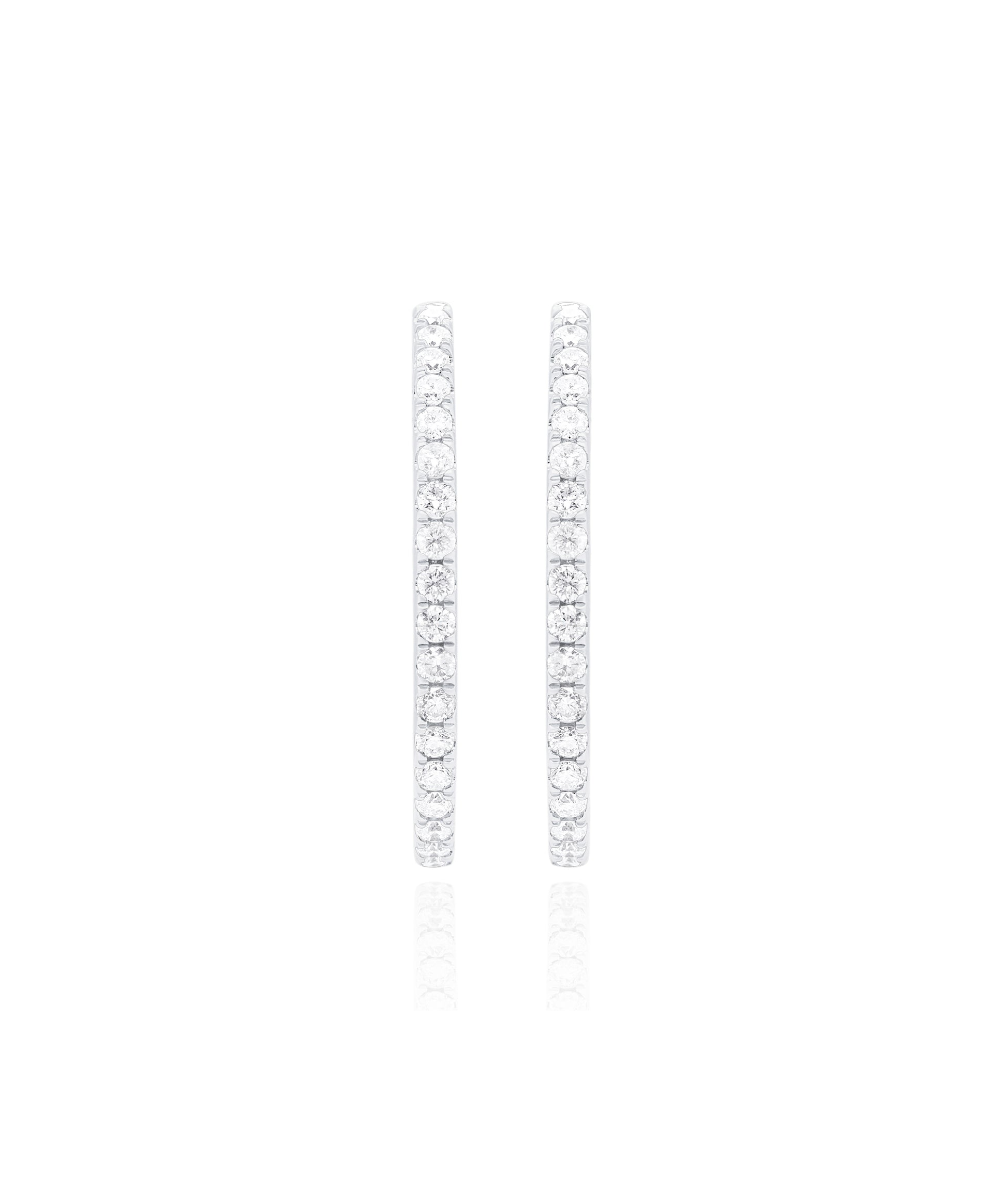 A subtly bold statement to add to your favorite outfit, these 1.39ctw Inside Outside Diamond Hoops are handmade in 18K White Gold and will shine best with a fun and simple updo!