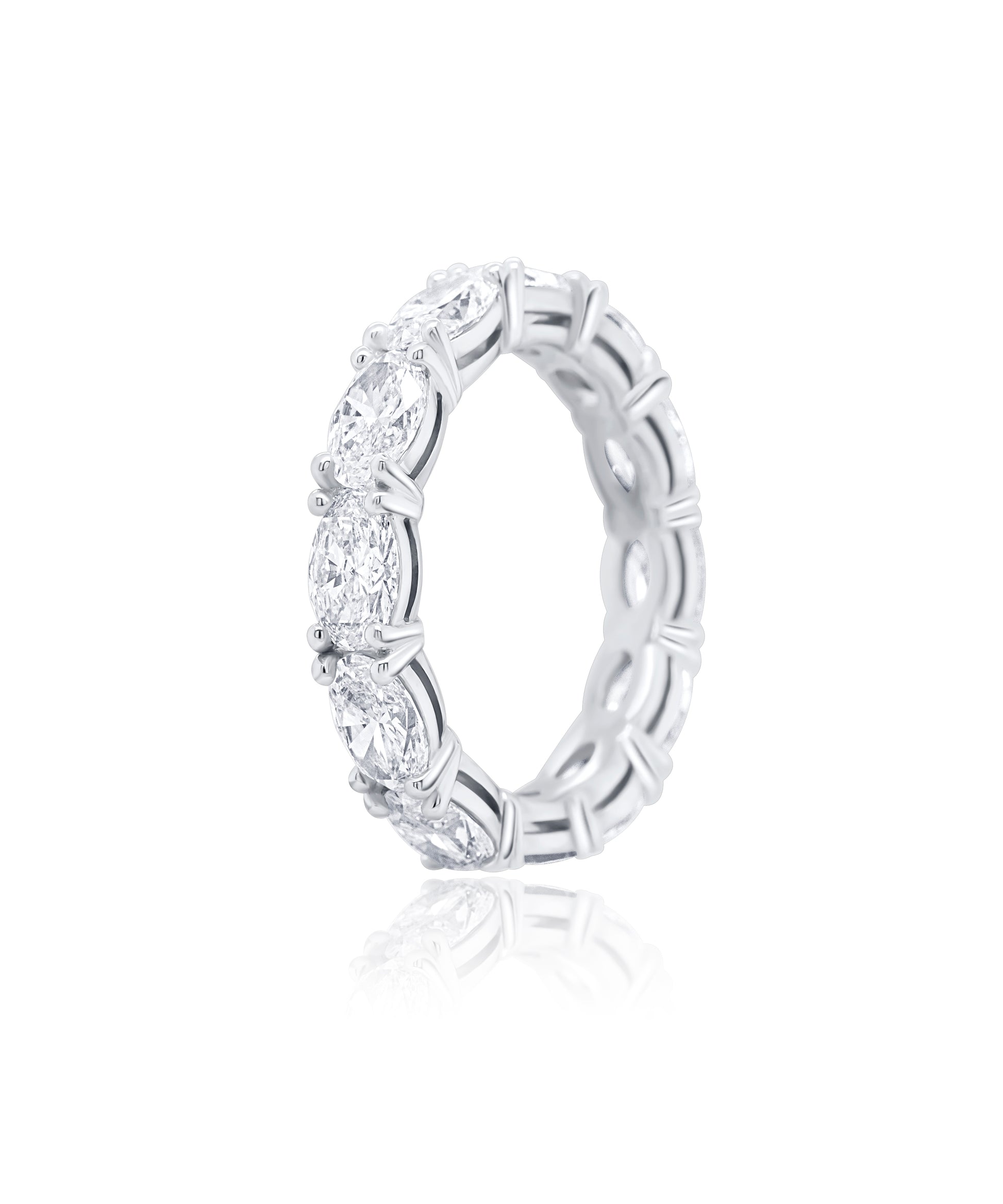 Designed for the modern romantic, this band reimagines a classic silhouette with a fresh perspective. Each oval diamond is intentionally set east to west, it's unique orientation giving the piece a refined yet effortless feel. Every diamond is GIA Certified and hand selected for its radiant sparkle that is worthy of the moments it celebrates. Whether worn as a wedding band, an anniversary piece, or simply as a personal treasure, this ring tells a story of beauty, intention and timeless style.