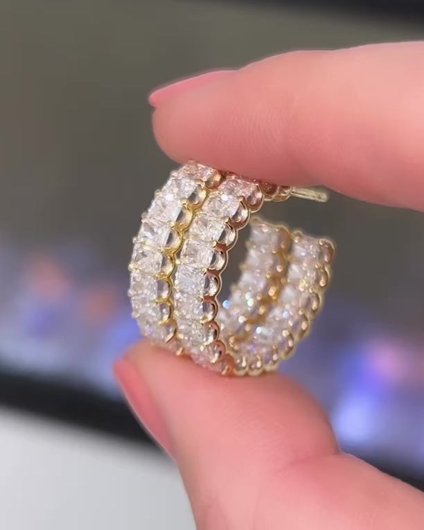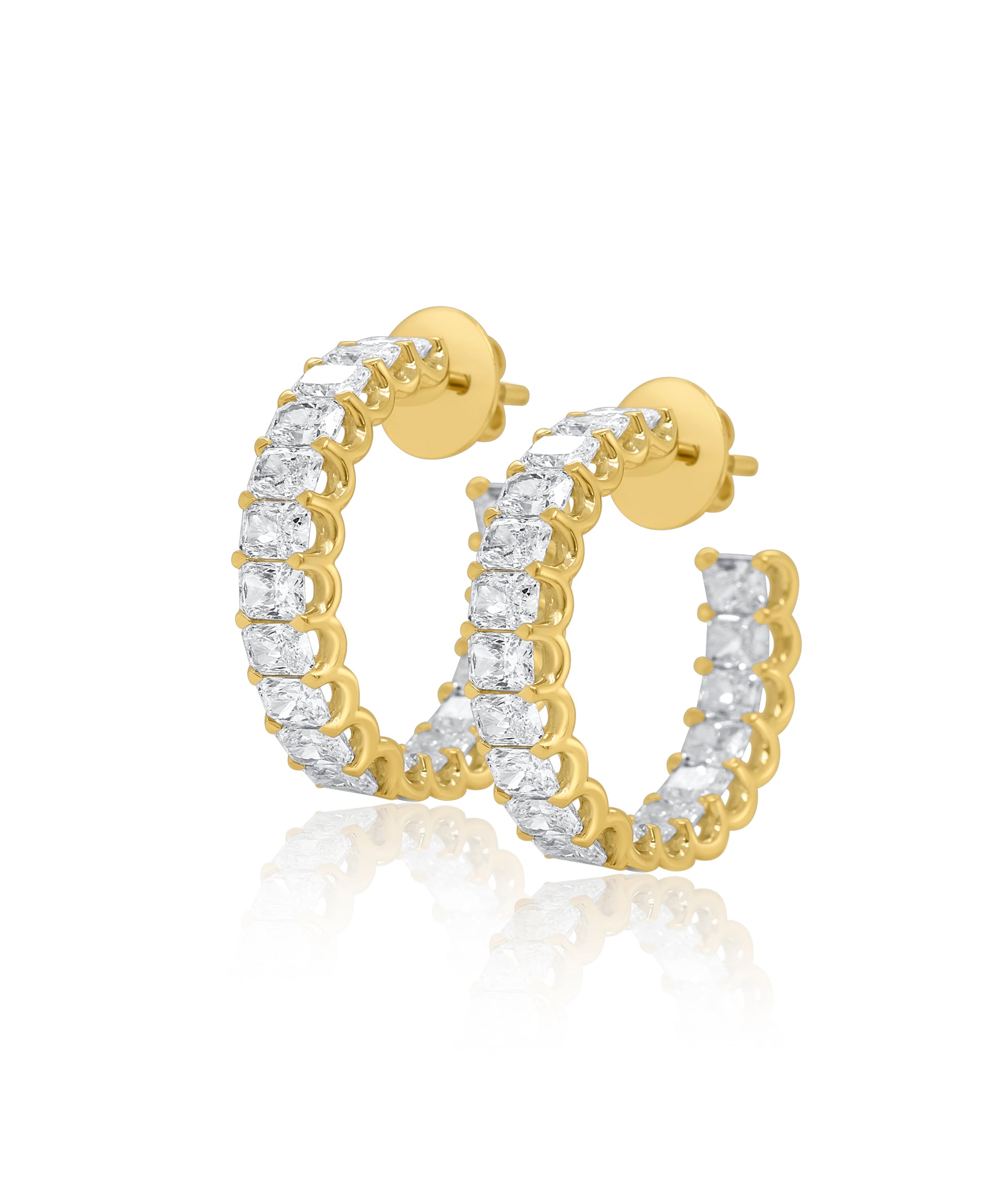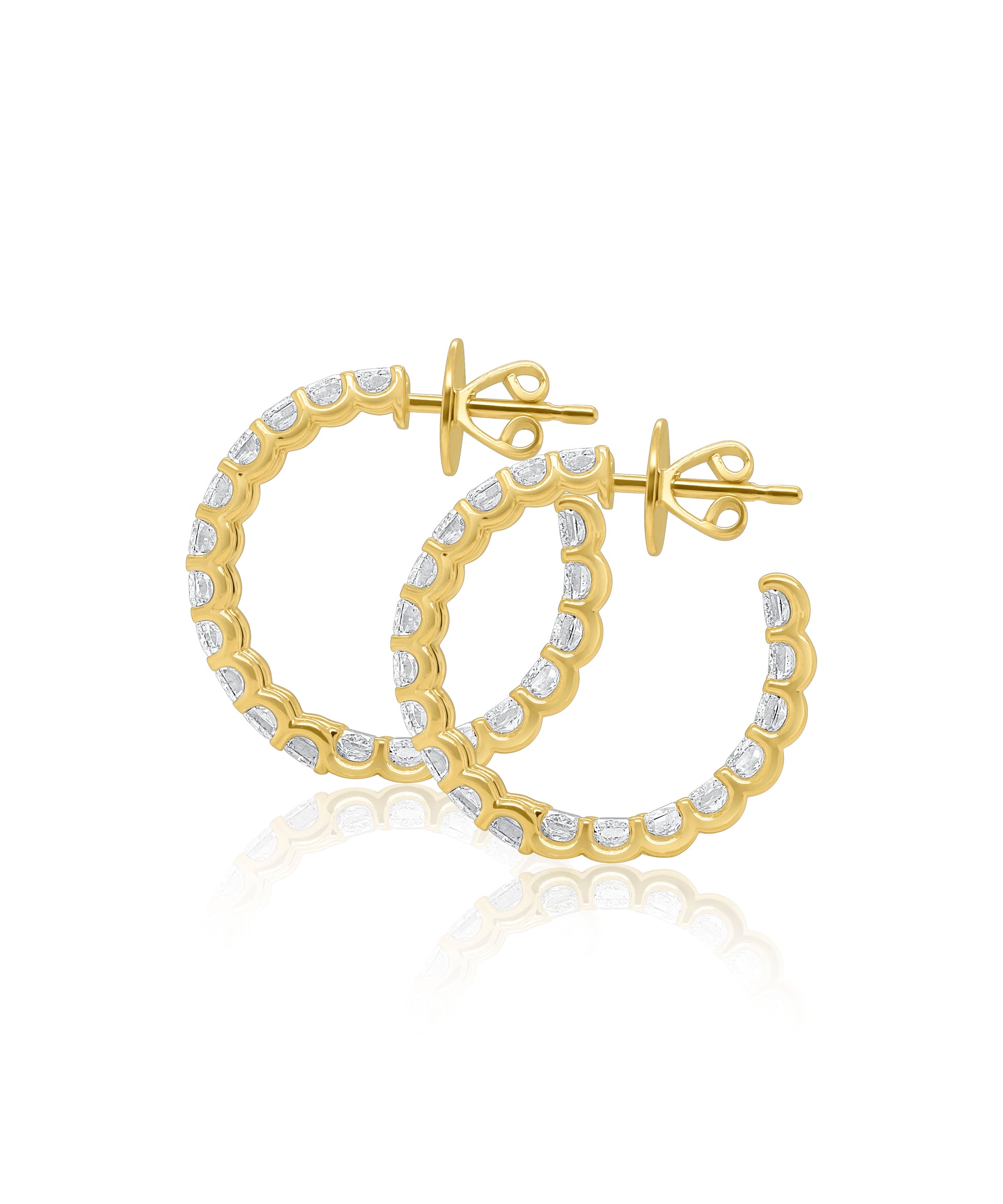 For those who look for one of a kind pieces, dazzle with every twist and turn in these 6.28ctw Inside Outside Diamond Hoops handmade in glowing 18K Yellow Gold. Adorned with a total of 38 Diamonds, these hoops are a testament to opulance and craftmanship. Let the radiance of each diamond illuminate your style.