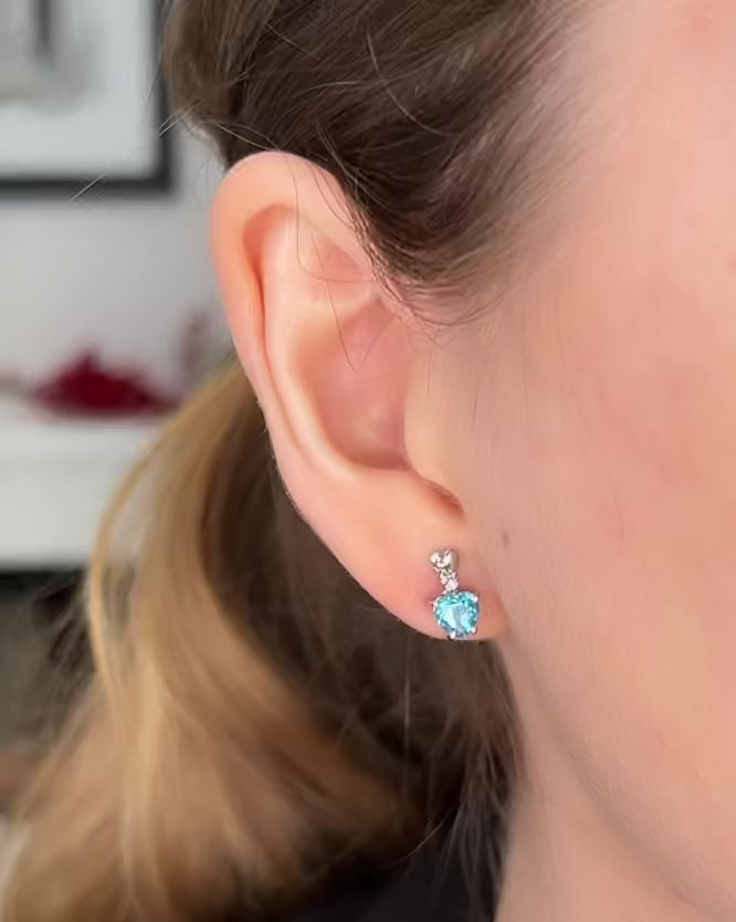 Show some love with these bright Blue Topaz Heart shaped stud earrings! Handmade in 14k white gold and features a white diamond on both pieces to add even more sparkle. These earrings are the perfect pop of color to your fine jewelry collection.