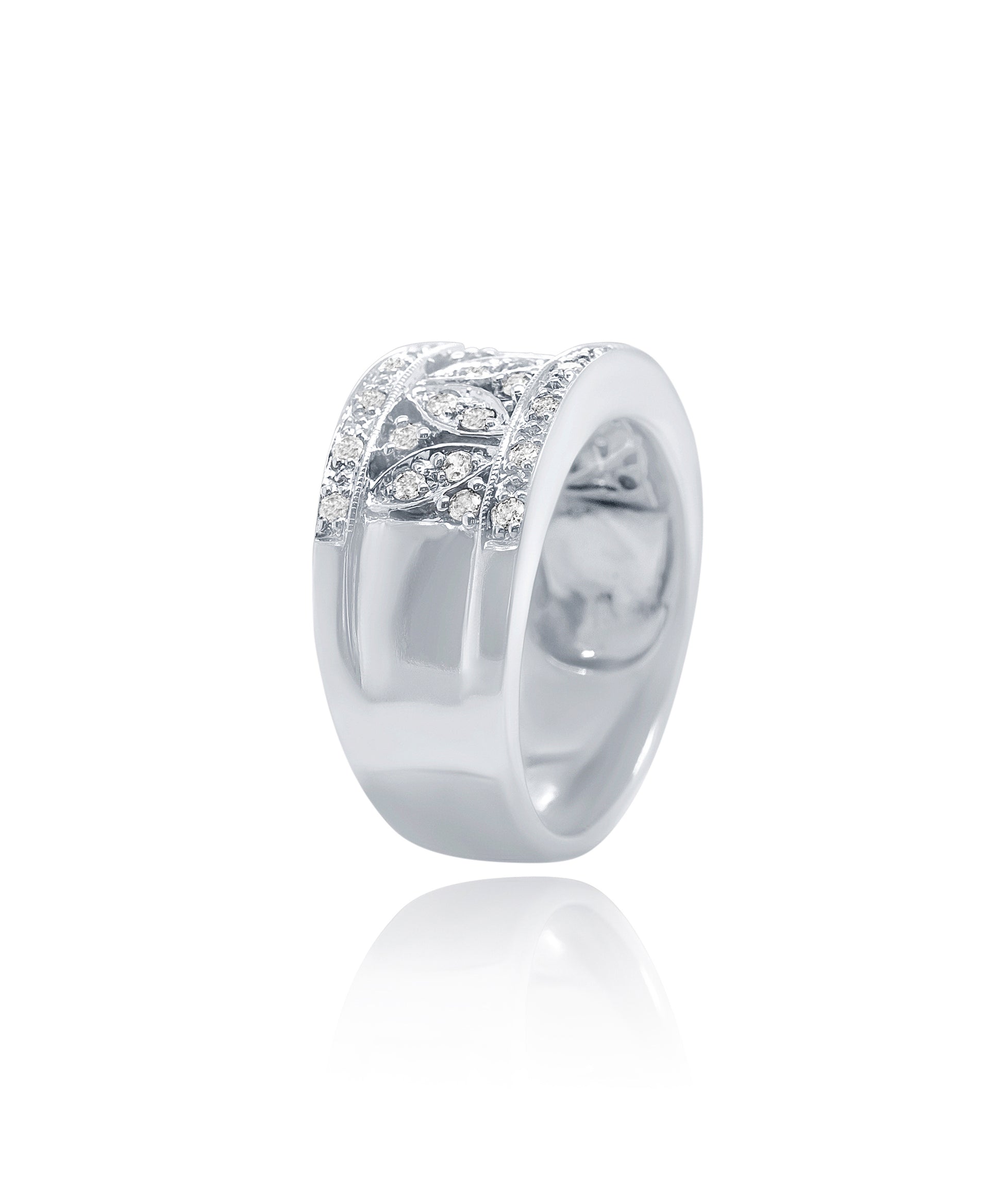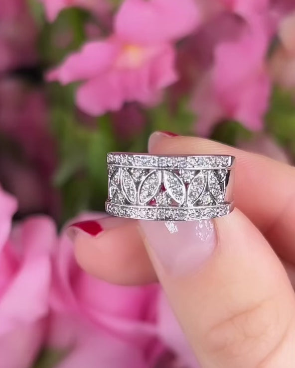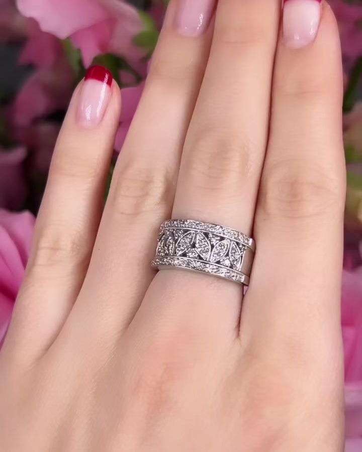 This statement pieces transcends traditional design, featuring a captivating mosaic pattern embellished with a brilliant pave of diamonds. The wide silhouette of the band ensures a bold and striking presence in your fine jewelry collection.