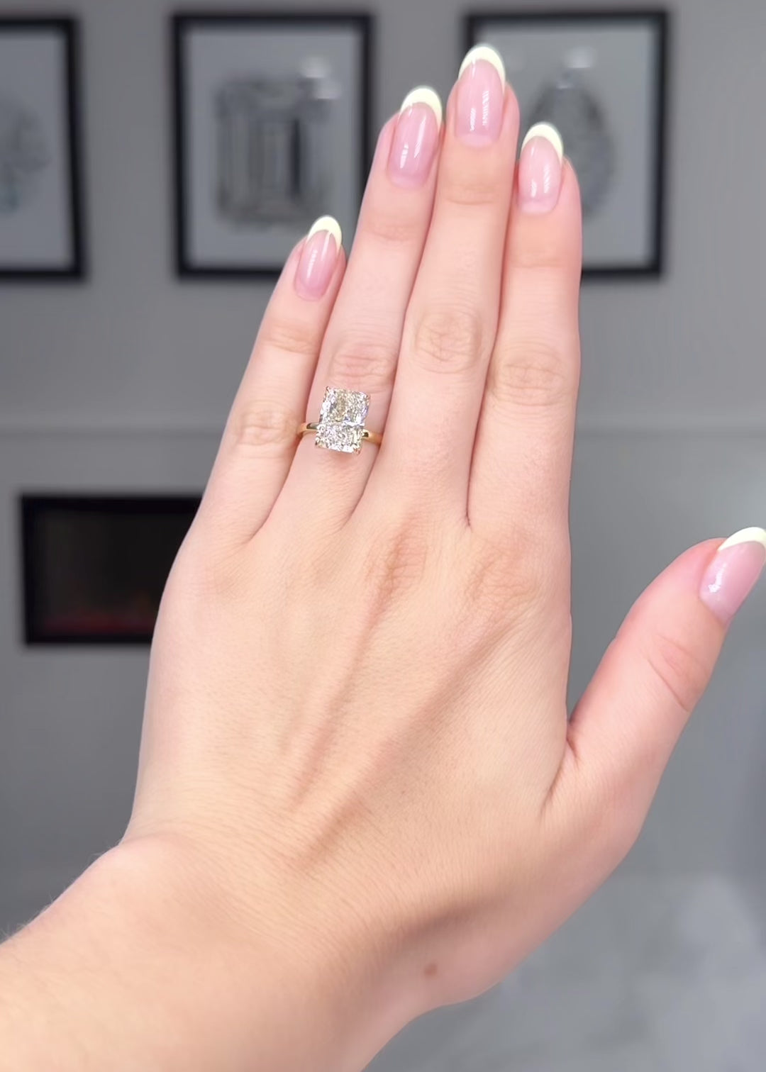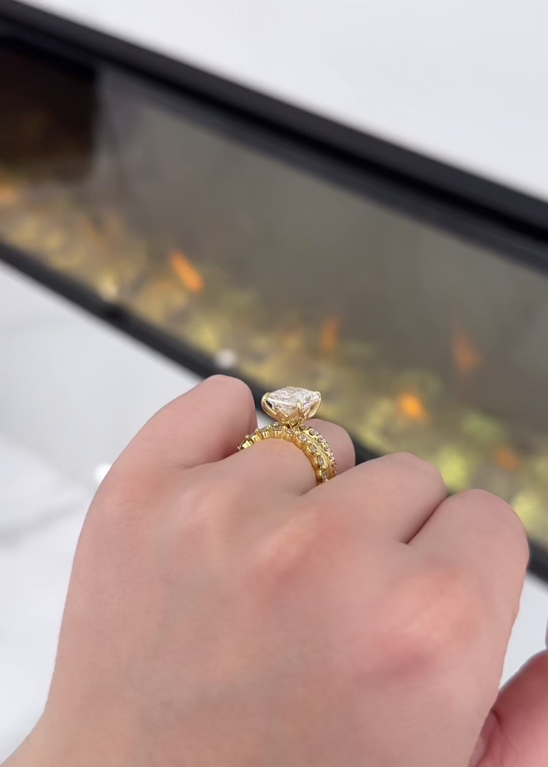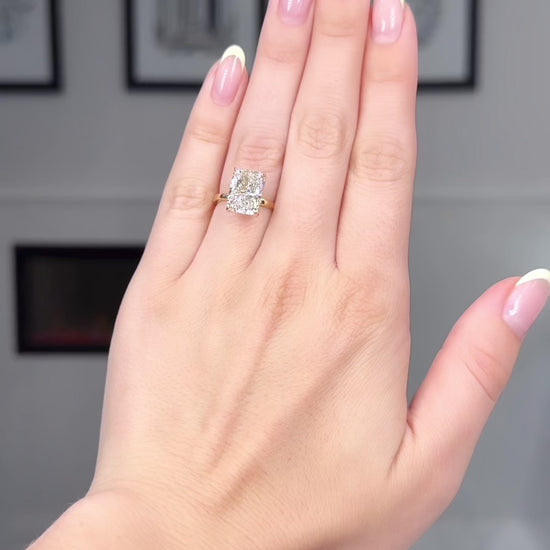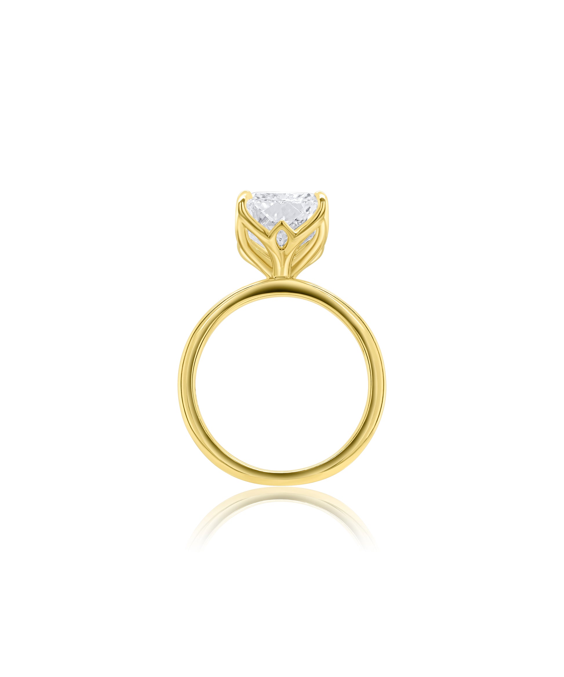 Elegant yet timeless, this ring is designed to feel as extraordinary as the moment it represents! This 4.75ct diamond is set in our 18K Yellow Gold Petal Setting. The diamond's brilliant facets are enhanced by the warm glow of the gold, while the basket's petal inspired curves add a romantic, nature-inspired touch to the engagement ring. This ring is a breathtaking choice for a love that deserves nothing less than perfection.