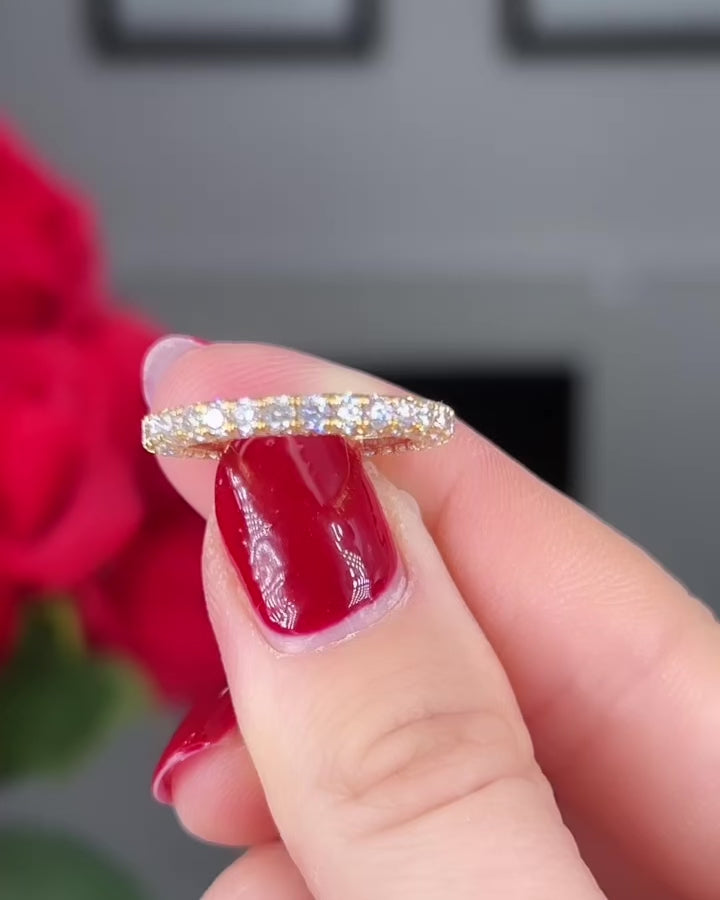 Captivate hearts and radiate sparkle in the spotlight with our Shine Bright Diamond Wedding Band. Created for maximum shine and brilliance, this band has pave set diamonds on not one, not two...but on three sides! This luminous design creates an enchanting display of shimmer that will shine bright.