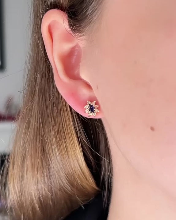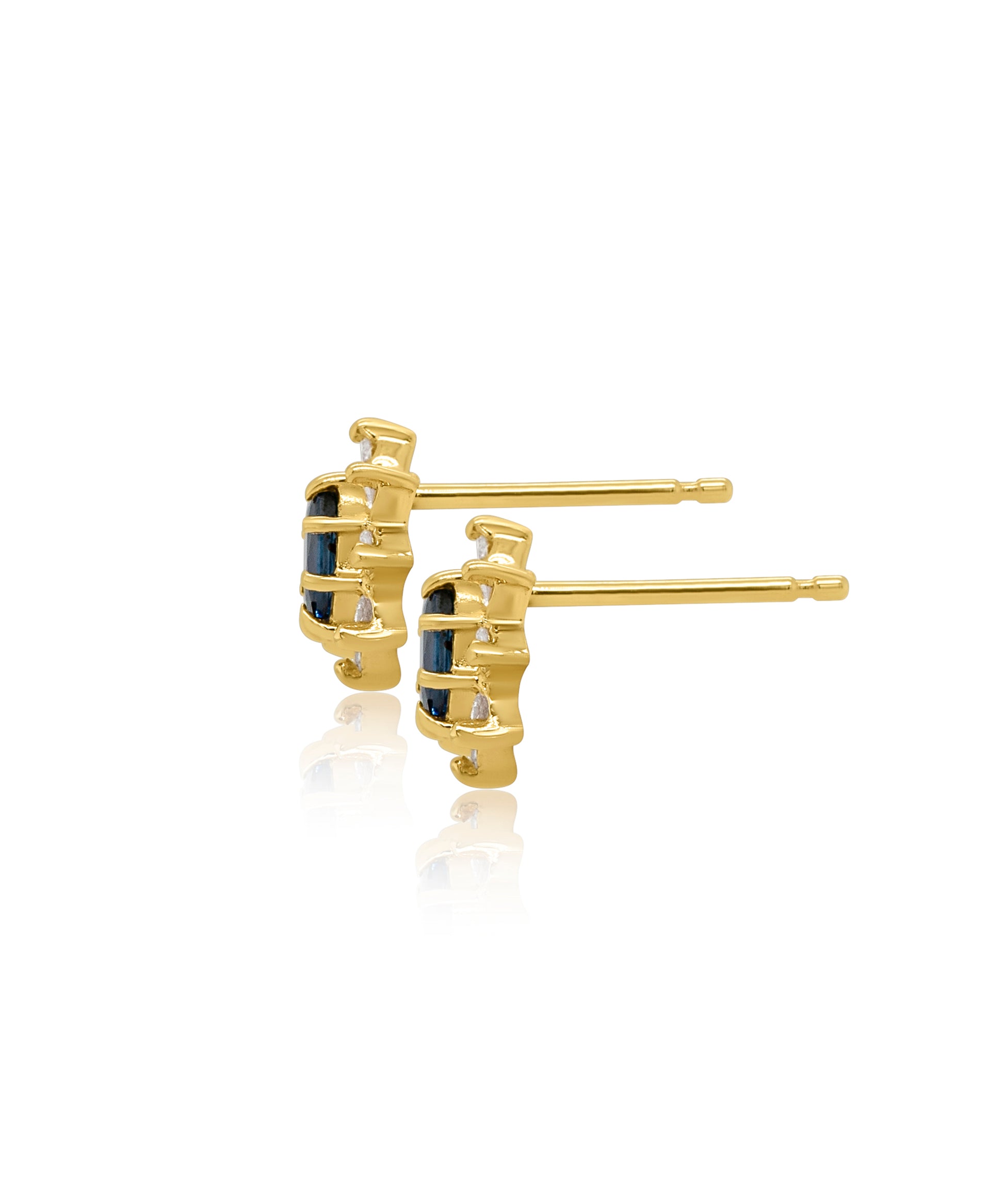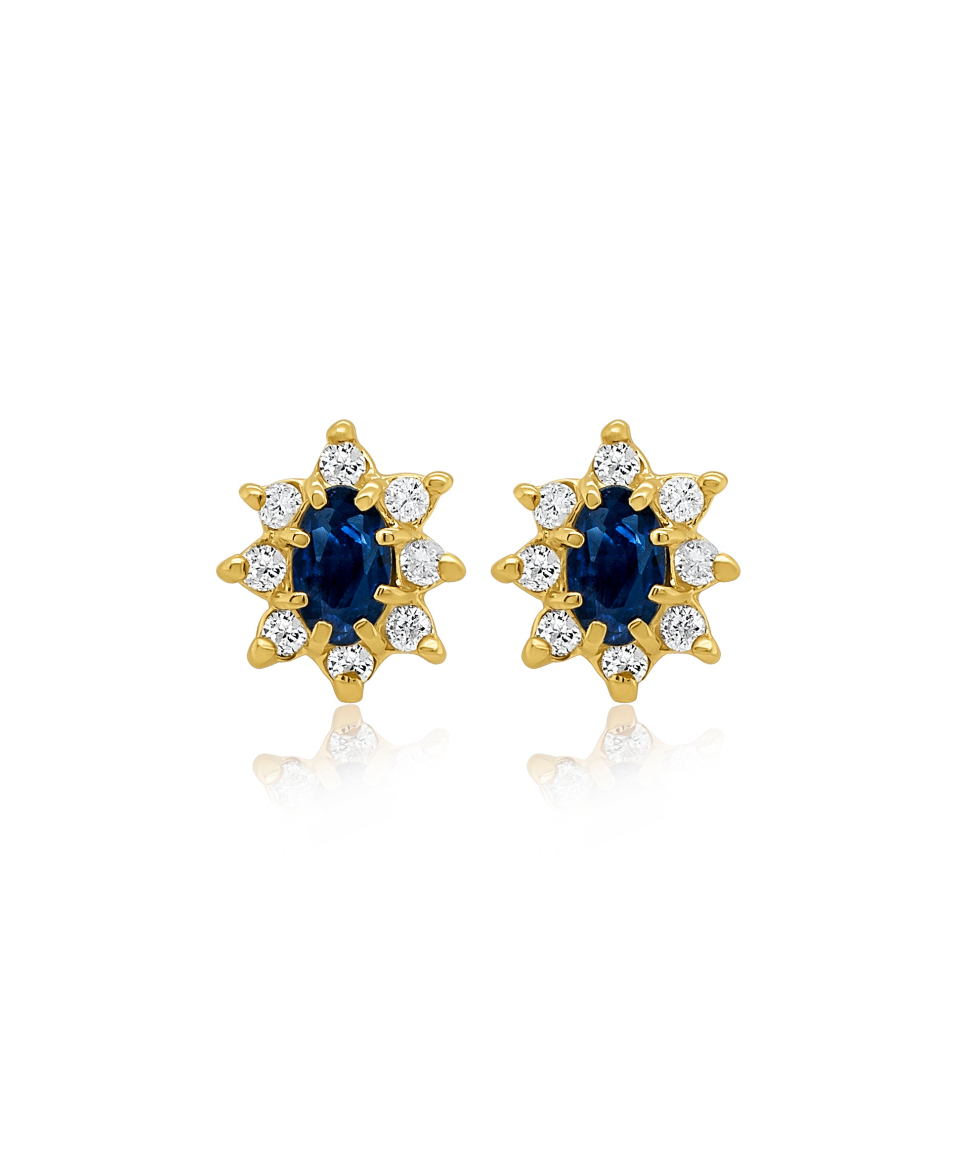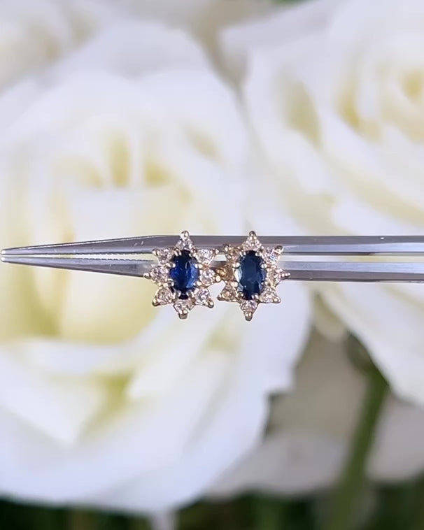 Put a spring in your step with these Small Sapphire Starburst Studs! Deep blue ovals of Sapphire are paired with the sparkliest of round diamonds and will add to any everyday look. Handmade in 14k Yellow Gold, it's time to add these to your fine jewelry collection!